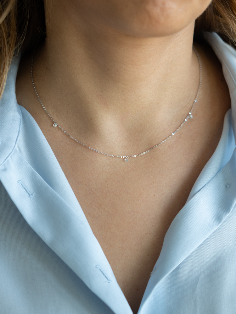 Ogrlice sa probušenim dijamantima, poznate i kao “floating diamond necklaces„.