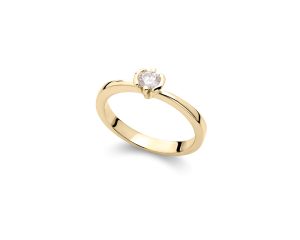 Suptilan zlatni prsten izrađen od 18K zlata sa centralno postavljenim dijamantom težine 0,19ct VS/G na nežan način ističe ženstvene i elegantne pokrete ruke.
