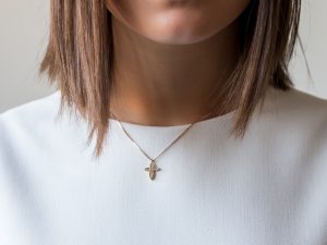 Brlilijantska ogrlica u belom zlatu, sa priveskom u obliku krstića, suptilne izrade i snažne simbolike će divno svetlucati na Vašem vratu i podsećati Vas na najveće životne vrednosti.