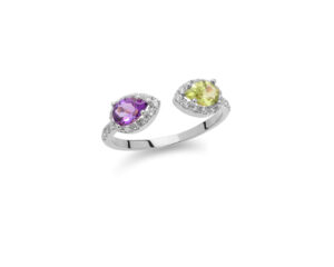 Brilijantski prsten sa pear shape ametistom i peridotom