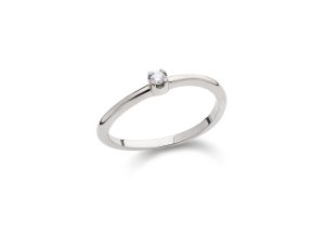 Zaprosite je ovim sofisticiranim prstenom koji je napravljem u kombinaciji belog i roze zlata. Dijamant je ugrađen u četiri krapne od belog zlata koje uzvišeno stoje na osnovi prstena od roze zlata. Jedinstven dizajn ističe lepotu i sjaj dijamanta. Siguran izbor za dame prefinjenog ukusa.