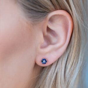 Minđuše – Cvetići sa dijamantom i plavim safirima