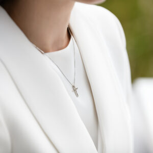 Ogrlica sa dijamantskim krstićem originalnog i pročišćenog dizajna je ovaj klasičan i tradiocionalan simbol učinila upečatljivim i neobičnim.
