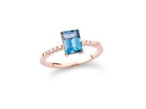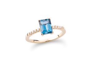 Prsten sa London plavim topazom čiju lepotu dodatno ističu dijamanti, je nepogrešiv izbor za dame koje znaju da svoju ženstvenost akcentuju na prefinjen način.