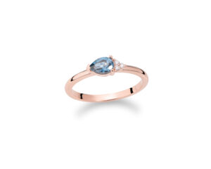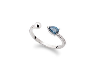 Za dame koje cene lepotu na svakom koraku i biraju sofisticiran nakit, brilijantski prsten sa pear shape London plaviom topazom i tri brilijanta, pruža izvanredan osećaj ženstvenosti i romantične elegancije.