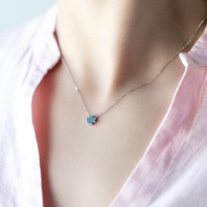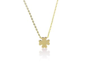 Minimalizam u nakitu je veoma aktuelan. Nežna zlatna ogrlica sa priveskom u obliku deteline će se divno uklopiti uz svaku Vašu odevnu kombinaciju. Veoma je suptilna i savršena za uklapanje sa drugim minimalističkim nakitom ali u isto vreme veoma prefinjena, ako želite da je nosite samu. Zbog visokog kvaliteta i jačine lančića, ova ogrlica je pravi izbor za osobe koje koje žele da nose nakit svakodnevno i da ga ne skidaju, ali i za bebe i decu kojima je potreban nakit koji je otporan i ne može da se pokida. Možete da izaberete boju ili kombinaciju boja zlata, priveska i lančića.