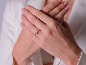 Ako ste sigurni da je Vaš svet sa njom ulepšan i da prosto cveta, poželećete da je pitate da ostane u njemu baš ovim prstenom od belog zlata sa cvetom od dijamanata.