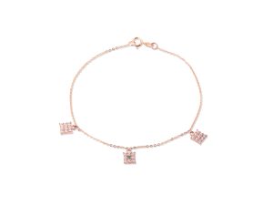 Zlatna narukvica sa tri viseća priveska sa cirkonima je neodoljiv poklon za vesele devojčice i dame koje vole razigran nakit.